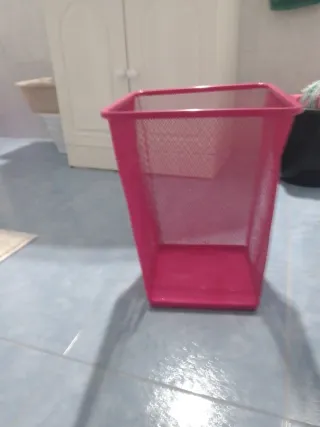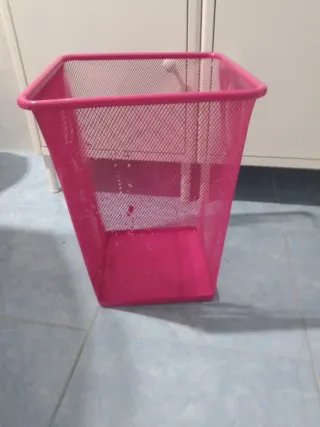 Papelera de oficina con un diseño moderno y funcional. Ideal para mantener tu espacio ordenado. - Fabricada en metal resistente. - Color rosa vibrante.