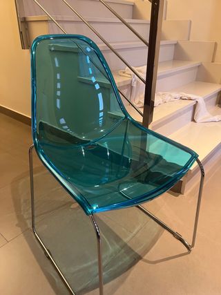 Se venden 2 sillas blancas iguales a las de la foto. Son muy cómodas. Tienen forma curvada y el respaldo flexible. El asiento es de plástico muy resistente y las patas son negras de hierro. Son muy fáciles de limpiar y apilables. Están como nuevas. Las puedes adquirir ya montadas o si quieres las podemos desmontar, cómo mejor te venga.
