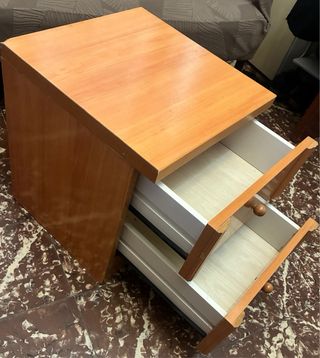 Conjunto de dos mesitas de noche de madera de pino. - Diseño moderno y funcional. - Acabado natural de la madera.