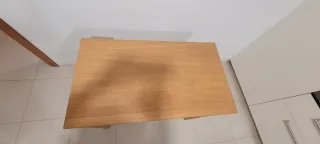 Mesa de cocina extensible con acabado en pino. Su diseño práctico la hace ideal para el día a día. - Extensible para mayor capacidad. - Acabado natural. - se incluyen dos sillas. - Vivo en Benalmádena, provincia de Málaga