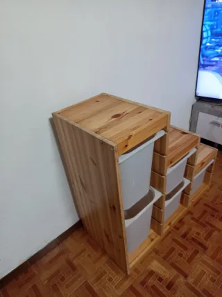 Conjunto de muebles modulares de pino, perfectos para organizar tu espacio. - Diseño con cajones para almacenamiento. - Acabado en madera natural.