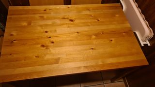 Mesilla de pino. Con marcas de uso.