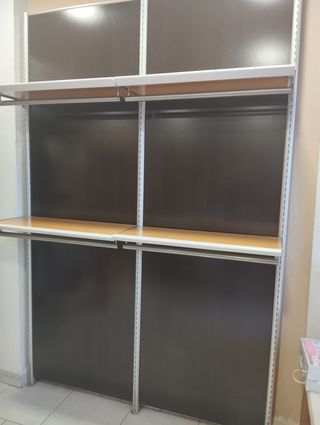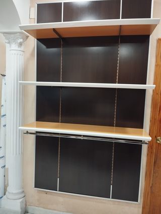 Estanterías comerciales wengué/pino – Doble + sencilla | Oferta lote Se venden 2 estanterías comerciales en muy buen estado, listas para usar: • 3 baldas pino (0,80 x 0,35 m) con colgadores • Estructura regulable (0,80 x 2,50 m) • Trasera wengué incluida • Muy resistentes • 1 unidad doble + 1 sencilla, se pueden combinar o adaptar 💰 Precio lote: 250 € (mejor que por separado) unidad 150 📍 Solo recogida en Córdoba – no se realizan envíos Gran oportunidad para equipar tu tienda o espacio de almacenaje de manera económica y funcional.