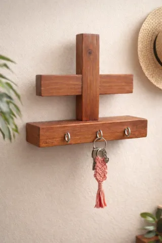 Portallaves de madera de pino, elaborado artesanalmente. Cuenta con un diseño rústico y funcional. - Estructura de madera maciza. - Incluye ganchos metálicos para colgar llaves. - Perfecto para organizar tus llaves en la entrada.