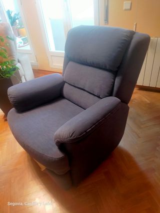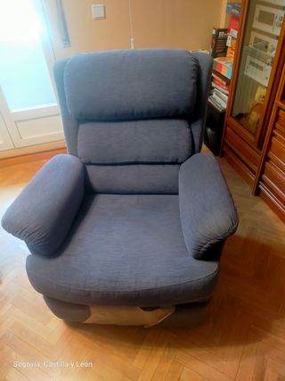 Sillón relax. Marca Mopal. Color azul. Estructura madera de pino y tablero de partículas, modelo relax con mecanismo metálico. Tela confort, desmontable en su totalidad y lavado en lavadora. Altura respaldo 98 cm Altura asiento 65 cm. Fondo asiento 57 cm Ancho asiento 50 cm Medidas abierto 180 cm Nuevo sin uso.