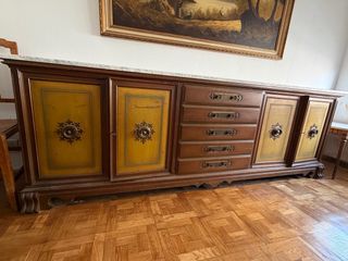 Mueble de salón madera maciza y mármol
