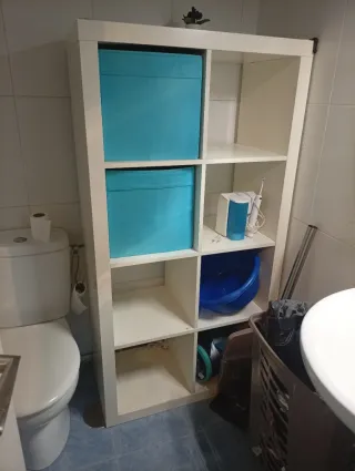 Mueble de almacenaje de Ikea, ideal para organizar tus pertenencias. - Estructura de color blanco. - Múltiples niveles para guardar objetos. Se vende x mudanza y no poder llevarlo urgente se puede negociar.