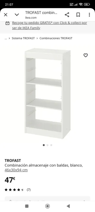 Mueble de almacenaje TROFAST de IKEA, ideal para organizar. -Su valor en tienda es de 112€, se vende por 70€ . - Combinación con baldas y cajas. - Medidas: 46x30x94 cm. Y el otro 36x70x145cm. -No se hace envío.