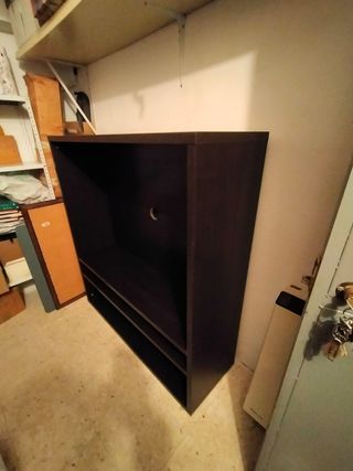 color wengué. Está montado, pero se puede desmontar para transportarlo mejor. Los módulos de puertas laterales están desmontados, llevan cajones y baldas.
