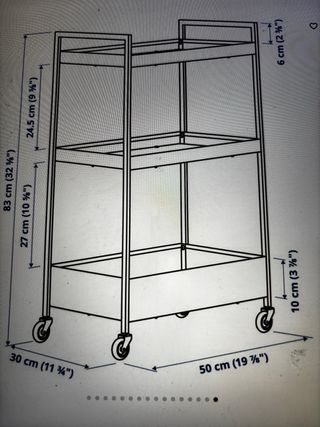 Carrito auxiliar de metal con tres niveles. - Diseño moderno y funcional. - Ruedas para fácil movilidad.