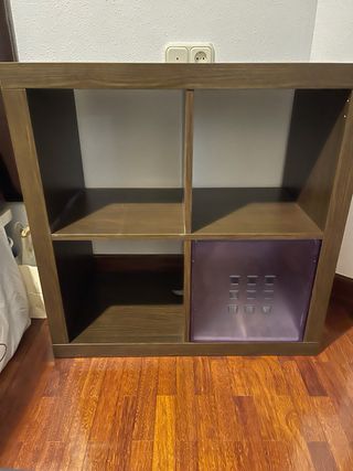 Estantería modular Kallax de Ikea en acabado wengué. Ideal para organizar tus espacios. Tiene dos cajones que se quitan y ponen. Incluidas en el precio - Diseño de 4 cubos. - Acabado en color marrón oscuro.