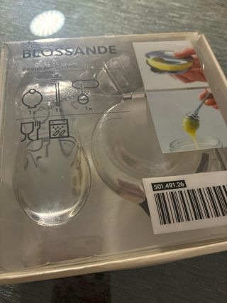 Set de cocina de Ikea BLOSSANDE. - Incluye infusor de té y cuchara para miel. - Diseño moderno y funcional.