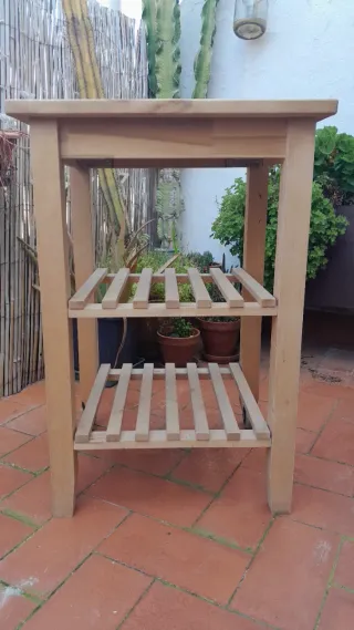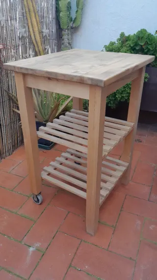 Carrito de abedul 100X43x90 alto IKEA Förhöja en madera natural, muy estable y resistente. Con dos cajones de madera para añadir utensilios. Se encuentra en buen estado general, con uso normal. 👉 Tiene unas pequeñas marcas de tinta/sellos en un lateral (ver fotos), no afectan al uso y se pueden mejorar fácilmente con limpieza o lijado suave. Estructura sólida, sin holguras ni problemas. Se entrega limpia. 💪 Muy robusta 🏠 Uso doméstico (no intensivo) 💰 Precio: 80€ vale nuevo 150€