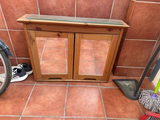Mueble de baño madera con puertas y espejo