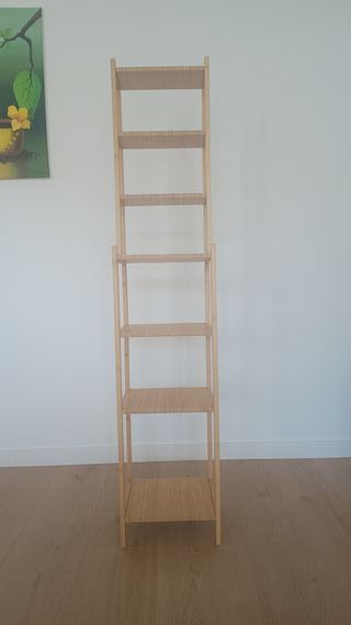 Estantería tipo escalera de bambú, modelo Ragrund de IKEA. Es un mueble versátil que combina funcionalidad y diseño. - Fabricada en bambú. - Diseño de escalera con estantes.