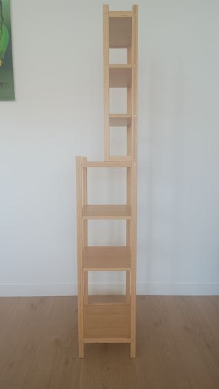 Estantería alta y estrecha de IKEA, descatalogada. Como nueva, sin golpes ni desperfectos. Incluye anclajes pared, muy estable y resistente. Perfecta para aprovechar espacios pequeños: pasillos, entre muebles, cocina, baño o zona de trabajo. Ideal para libros, CDs, costura, manualidades o colecciones. Muy práctica por su tamaño: ✔ Altura: 200 cm ✔ Ancho: 20 cm ✔ Fondo: 27 cm ✔ 12 estantes Madera en tono claro, combina con cualquier estilo. Sólo se vende 1 unidad, las cestas no están incluidas. Sólo recogida.