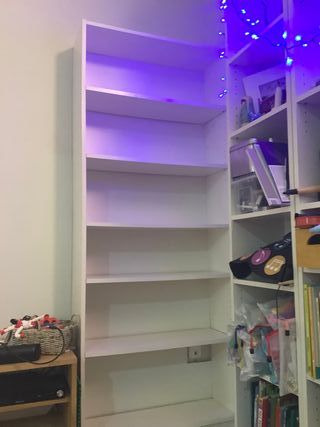 Estantería alta de la serie Billy de Ikea en color blanco. Ideal para organizar libros y objetos. Está usada, la compre de segunda mano, pero apretando tornillosde nuevo estaría bien. Tambien para un garaje, taller... NO AYUDO A BAJAR.