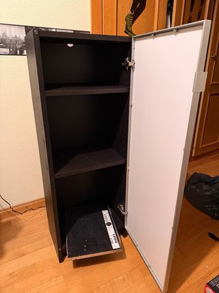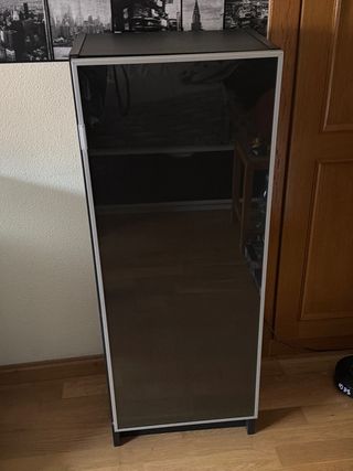 Muebles Ikea ideal para decorar y almacenar. - Dos cajones con tiradores metálicos. - Compartimentos abiertos. - Puertas frontales. - Encimera de cristal en uno de los muebles. - Uno de los muebles tiene un agujero para la entrada de cables. - Los muebles se entregan montados en el barrio del Cañaveral (Madrid). - Si interesa, se puede llevar gratis una estantería Billy (un poco rayada) y una mesa pequeña Ikea (una esquina rota). -Precio NO negociable.