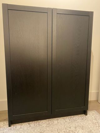 Mueble Ikea Billy negro con puertas blancas.