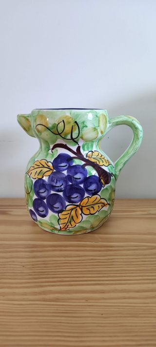 Jarra de barro esmaltado. Pintado uvas. Sin golpes. Ideal para florero, jarro, ánfora. Medidas 16.5cm alto x 14cm ancho. Diámetro boca 10cm Entrego en mano o envió perfectamente protegido. Hago lotes. Vintage, nórdico, retro, taller, atelier, atrezzo, fotografía, fábrica, diseño, ikea, pilma, maisons, zara home, campo, masía, rural, torre, rústico, mas, damajuana, pote, bottle, tarro, lata, llauna, botella, garrafa, ampolla, esmalte, porcelana, frasca, frasco, botica, tapón, jarra, almacenaje, florero, flores, recipiente, antigüedad, antic, antiga, antiguo, antiguos, antiguas, antigues, antique, antigüed artesanía talavera