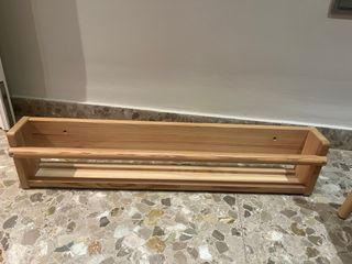 Estantería de pared BEKVÄM de IKEA, perfecta para especias o libros pequeños. Su diseño sencillo se adapta a cualquier cocina. - Material: Madera de álamo. - Color: Natural/Beige. - Ideal para organizar especias o pequeños objetos. OTROS MODELOS EN MI PERFIL