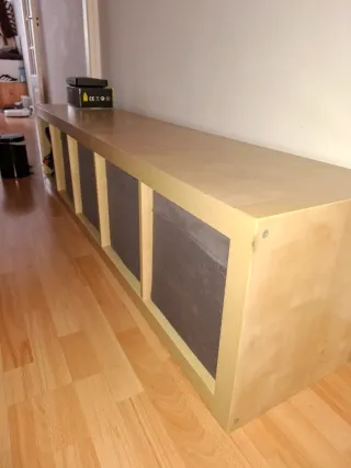 Estantería modular de diseño moderno. - Múltiples compartimentos para organizar. - Patas de madera para un toque cálido. - Tiene algunos rasguños y arañazos. De ahi su precio. - Patas de madera maciza aparte (10€ mas)