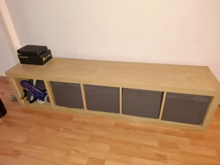 Estantería Kallax de Ikea con 8 compartimentos. Ideal para organizar y decorar tu espacio. En su dia la utilice como mueble de TV y presenta un pequeno desperfecto (ultima foto). - Diseño modular e incluye los 4 cajones que se ven en la foto. - Acabado liso y fácil de limpiar.