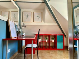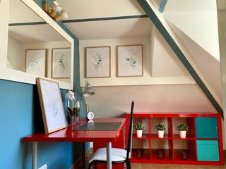 Mueble de almacenamiento Kallax con 8 huecos en rojo lacado brillante. Tiene montada una puerta en azul celeste y tengo los otros 7 cajones en el mismo azul. Todo incluido en el precio. No tengo mas fotos pues lo desmontamos y está embalado. Zona parque boadilla.