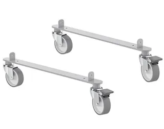 Juego de ruedas con freno para mueble Kallax. Añade movilidad a tus muebles de forma sencilla. -Largo del riel: 48 cm. -Ancho del riel: 4 cm. -Altura total (desde el suelo): 12 cm - Fabricadas en metal y goma. - Color gris y plateado.