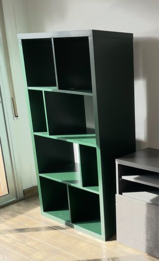 Estantería de diseño moderno en color verde. - Estructura con múltiples compartimentos. - Ideal para organizar libros y objetos decorativos. Está como nueva