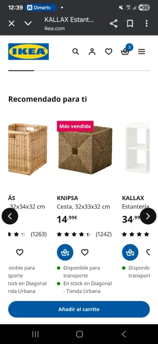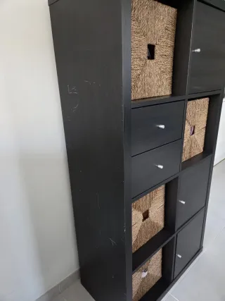 Estantería KALLAX de IKEA con acabado en negro. - Diseño modular con 8 cubos. - Ideal para organizar libros, decoración o almacenamiento. Estantería IKEA KALLAX 2x4 – Negro/Marrón Vendo estantería IKEA KALLAX en color negro/marrón, formato 2×4 cubos. Está en muy buen estado, ideal para libros, decoración, discos, oficina o salón. Muy estable y fácil de combinar con cualquier estilo. ✨ Medidas (modelo oficial KALLAX): • Ancho: 77 cm • Alto: 147 cm • Fondo: 39 cm • Tamaño de cada cubo: 33 × 33 cm aprox. Perfecto para colocar cajas tipo KALLAX/Drona. La vendo porque ya no la necesito. Se recoge en mano.