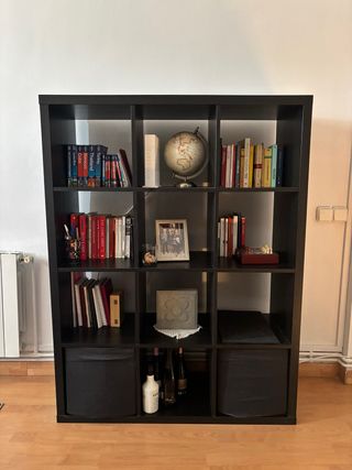 Se vende estantería Kallax de Ikea en color negro. Ideal para organizar tu espacio. - Estructura de madera. - Múltiples compartimentos para almacenamiento.