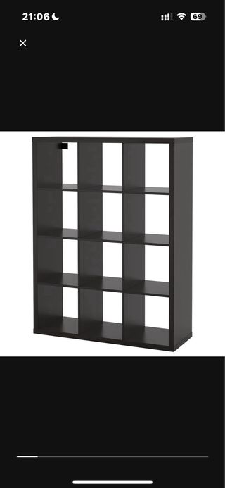Estantería modular Kallax de Ikea en color negro. Perfecta para organizar libros, decoración o cualquier objeto. - Diseño de 8 cubos. - Estructura robusta. Medidas en la ultima foto 2 unidades disponibles 1ud 30 eur 2ud 50eur Solo recoger finca con ascensor disponible a partir del 15 dic