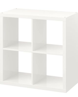 Estantería Kallax de Ikea con acabado en madera clara. Ideal para organizar tus espacios. - Diseño de 4 cubos. - Acabado en tonos beige y marrón.