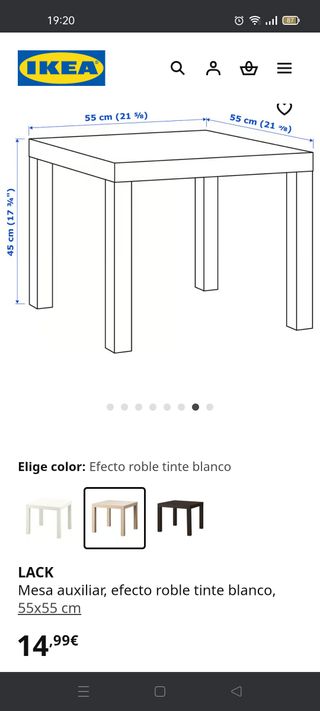 Mesa auxiliar Lack de Ikea. Su diseño minimalista se adapta a cualquier espacio. - Tablero de partículas y relleno de nido de abeja de papel. - Patas de aglomerado. - Acabado blanco.