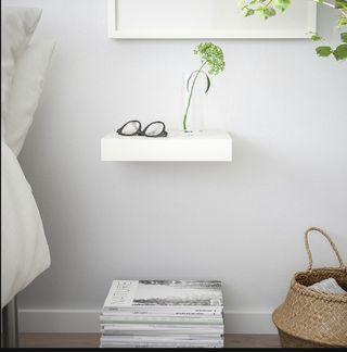Estantería flotante de madera, modelo LACK de IKEA. Montaje oculto para un aspecto limpio. Peso máximo de 10kg.