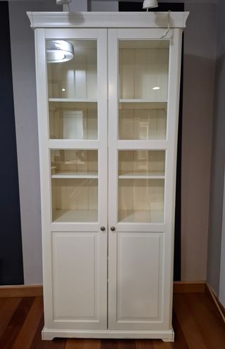 Vitrina de la serie Liatorp de Ikea. Cuenta con puertas de cristal y estantes interiores. - Estructura de madera. - Puertas con tiradores. - Iluminación interior.