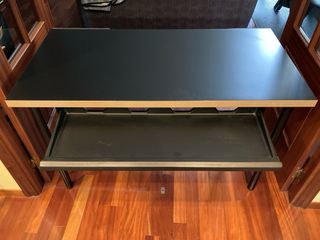 Escritorio para ordenador Ikea con plataforma extraible para teclado y raton (muy comoda y genia para mantener la superficie despejada). - Tablero de 120x60cm - Altura de 74cm