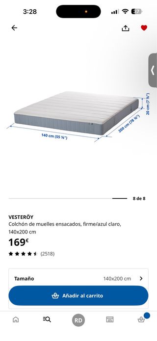 Colchón IKEA VESTERÖY 140×200 – NUEVO Colchón totalmente nuevo, sustituido por IKEA en garantía. Nunca usado, aún embalado. Medidas: 140×200 cm. Solo recogida en mano en La Coruña. Pago en efectivo o por Wallapop. No envío. No enlaces externos