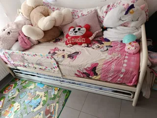 Cama nido con cama extraíble color blanco. Está usada pero en buen estado.
