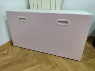 Baúl infantil Ikea rosa y blanco