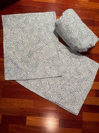 Conjunto de funda nórdica y almohadones con un diseño moderno y elegante. - Estampado verde y blanco. - Tejido suave y confortable. Mide 245 por 220 y las fundas almohadas 51 por 63