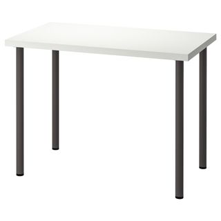 Mesa de escritorio con un diseño moderno y funcional, ideal para tu espacio de trabajo o estudio. Su estructura permite moverla fácilmente. - Tablero de madera con acabado claro. LINNMON - Patas metálicas en forma de horquilla. KRILLE - Ruedas para facilitar su desplazamiento. Precio nuevo en Ikea 80€