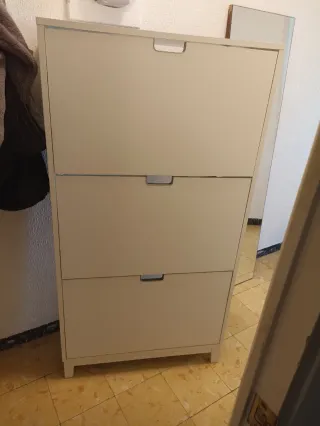 Zapatero de tres compartimentos de IKEA. Un mueble práctico para organizar tus zapatos. - Diseño moderno y funcional. - Acabado en color blanco.