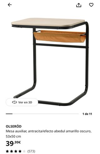 Mesa auxiliar de Ikea modelo Olseröd - Tablero con efecto abedul. - Estructura metálica. - Práctico bolsillo de tela. - 2 posiciones SE VENDE NUEVO: EN LA CAJA SIN ABRIR