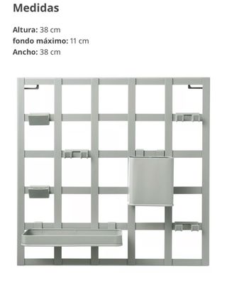 Organizador SNICKRA de Ikea, ideal para mantener tus espacios ordenados. Sus medidas son 38 cm de alto, 38 cm de ancho y 11 cm de fondo máximo. - Diseño modular y versátil. - Incluye varios accesorios para colgar.