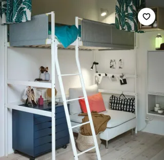 Cama alta Ikea gris y blanca