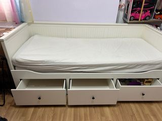 Diván blanco de Ikea con espacio de almacenamiento. - Incluye dos colchones. - Diseño de tres cajones frontales.