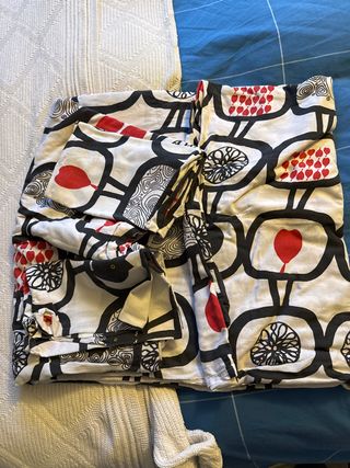 Funda nórdica de IKEA con un diseño abstracto y llamativo. Añade un toque de estilo a tu dormitorio. - Estampado con formas orgánicas y detalles en rojo. - Cierre con botones ocultos.
