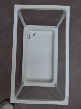 Estructura metálica con base de plástico para cubo de basura. - Diseño rectangular. - Base con forma de bandeja.